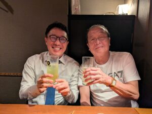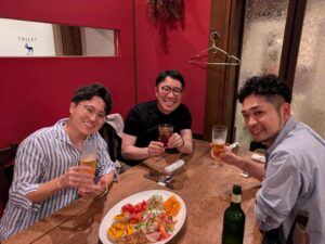 懇親会で、鹿児島のレーザーの重鎮の先生と会食。