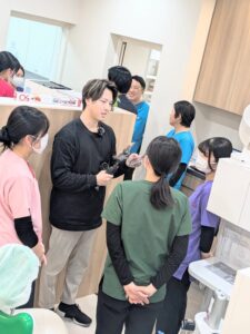 勤務医の先生とアシスタントの幹部がさっそく練習を開始しています。