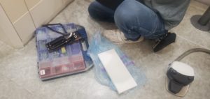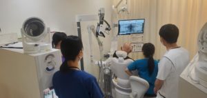 診療の空き時間に、口腔内カメラ12枚法を歯科衛生士さんが練習を行います。