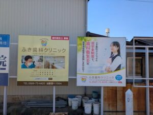 歯科衛生士専門学校奨学金制度についての看板を出しています。