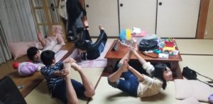 実家で、食べ過ぎたようで、4人で運動してます(笑)