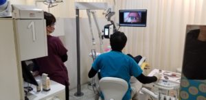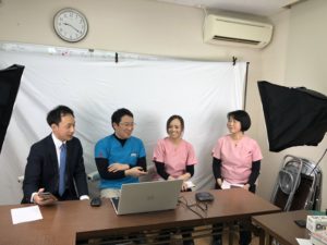 診療後は、受付スタッフ3人とLINEを動画で勉強。
