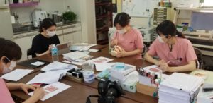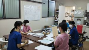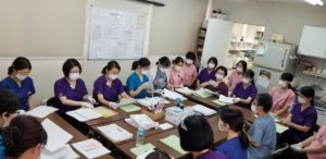 新人スタッフさんたちを幹部歯科衛生士がレクチャーしています。
