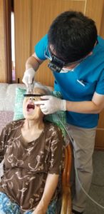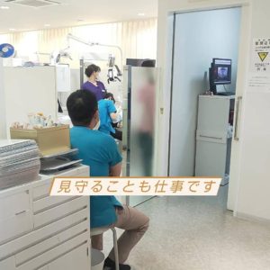 勤務医の先生の治療を後ろから見守っています。