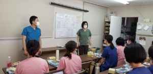 保険診療の流れをレクチャーしています。