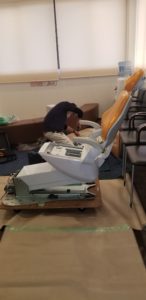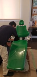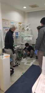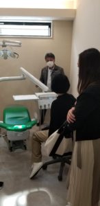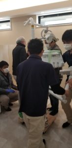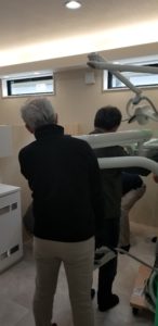 幹部の歯科衛生士さん2人に来てもらい、チェアの角度決め。