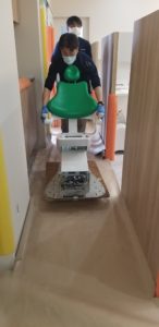 チェアをぶつけないよう4人体制で移動