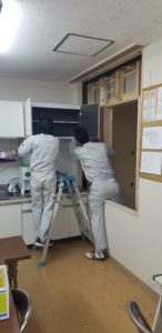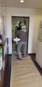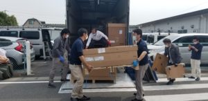 こんな感じで家具が手渡しされて、新設のメンテナンスルームへ運ばれていきます。
