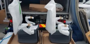 3台入ったチェアのトラックが搬入