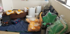 8時過ぎに業者さんに来てもらい、新しいチェアの確認をしています。