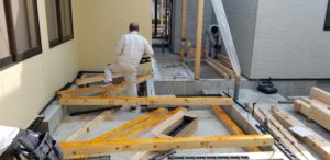 階段前もコンクリート工事をしています。