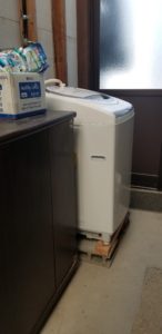 スタッフさんのロッカー兼倉庫を改修のため、洗濯機を移動