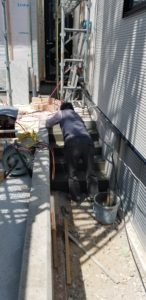 自転車置き場の横の機械室周りも同時進行をしています
