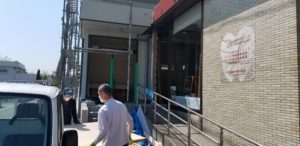 ・塗装屋さんがペンキを塗り始める