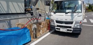朝7時過ぎに、木材が搬入されました