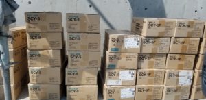 明日にタイル貼りのため、タイルの搬入
